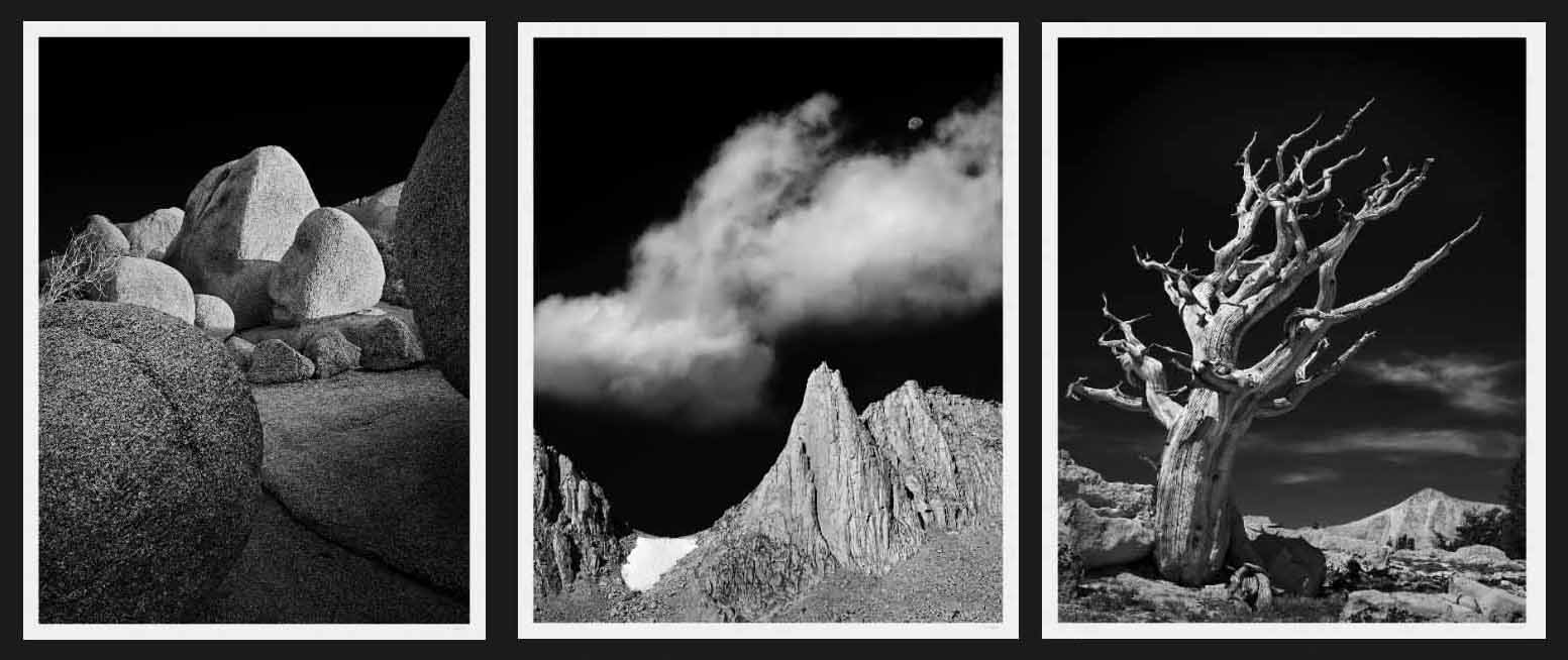 In general, B&W prints are available in all sizes up to 44" by whatever (5 feet or more). All are printed with a dedicated B&W, carbon pigment inkset of my own design. (I do not sell color prints.)