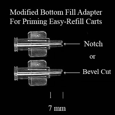 To see a picture of a modified (with a file) MIS Bottom Fill Adapter for priming, see